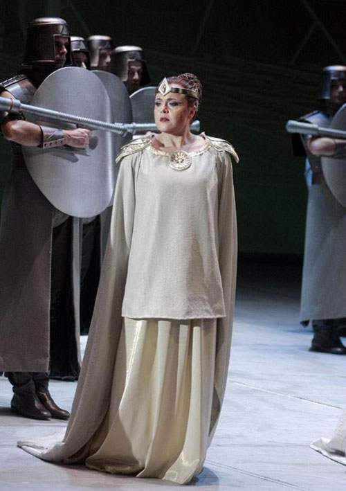 right) as Sinaïde but have noticed in the past few performances I've experience that her voice has taken on a very uncharacteristic harshness. Her duet with the equally rough sounding Eric Cutler (Aménophis) almost became a shouting match. Though it should be noted that Ganassi was cheered to the rafters while Cutler received a few jeers from the normally timid galleriste. Juan Francisco Gatell (Éliézer) and Barbara Di Castri (Maria) offered strong support in their few solo passages and to the ensembles. The one miscalculation was Anna Kasyan in the role of Anaï - her is a pleasant but thin voice and she seemed to lack both the breath control and the technique for her big scene. This music was written originally for the great Colbran and adapted for the equally admired Cinti-Damoreau, and no matter how brilliant the conductor requires a singer of equal brilliance.